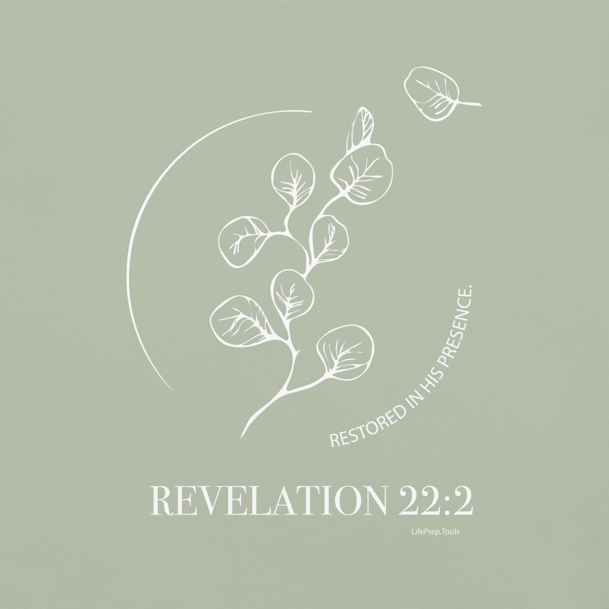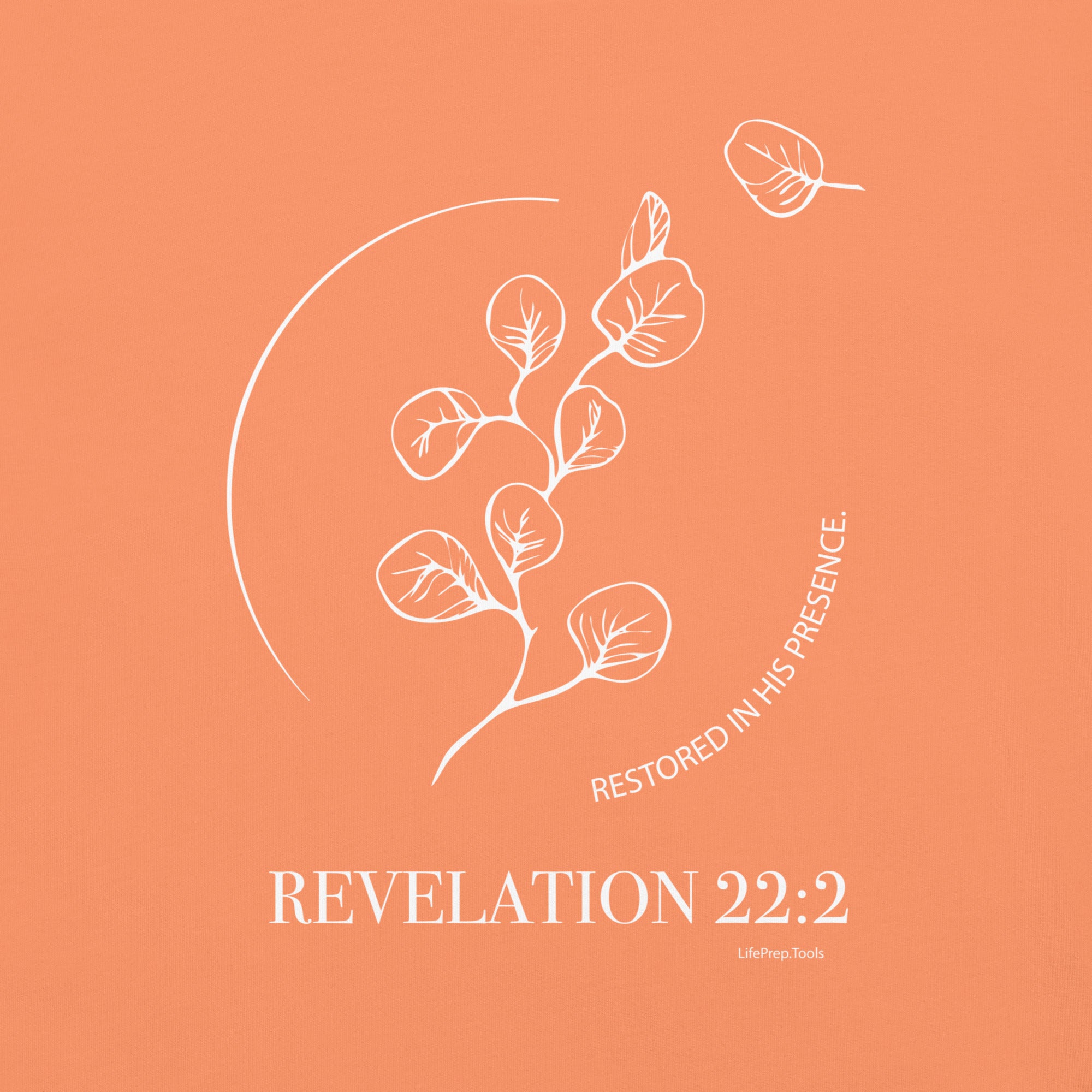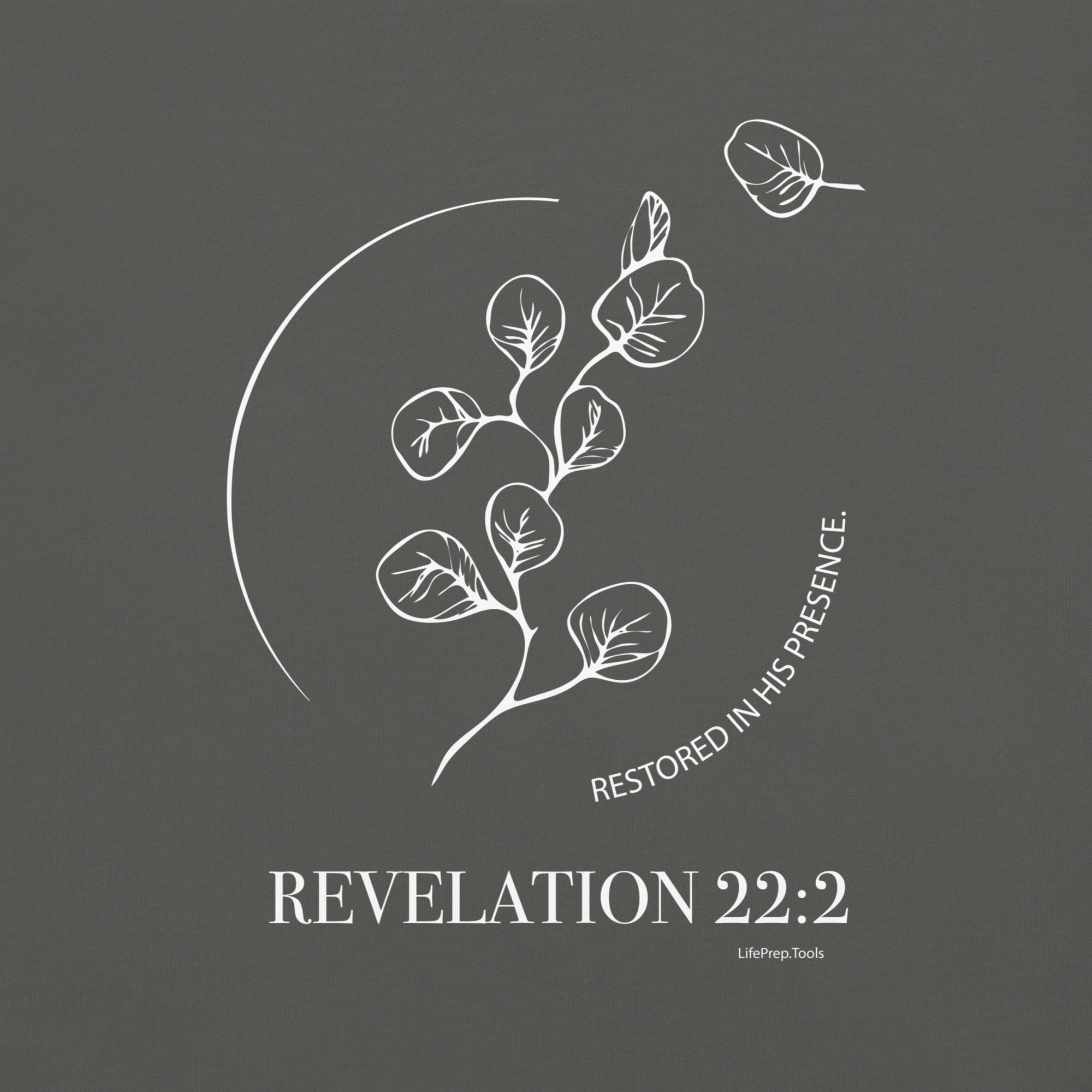 Carry a message of healing and renewal with this faith-inspired Comfort Colors tee featuring the words “Restored in His Presence” alongside Revelation 22:2.